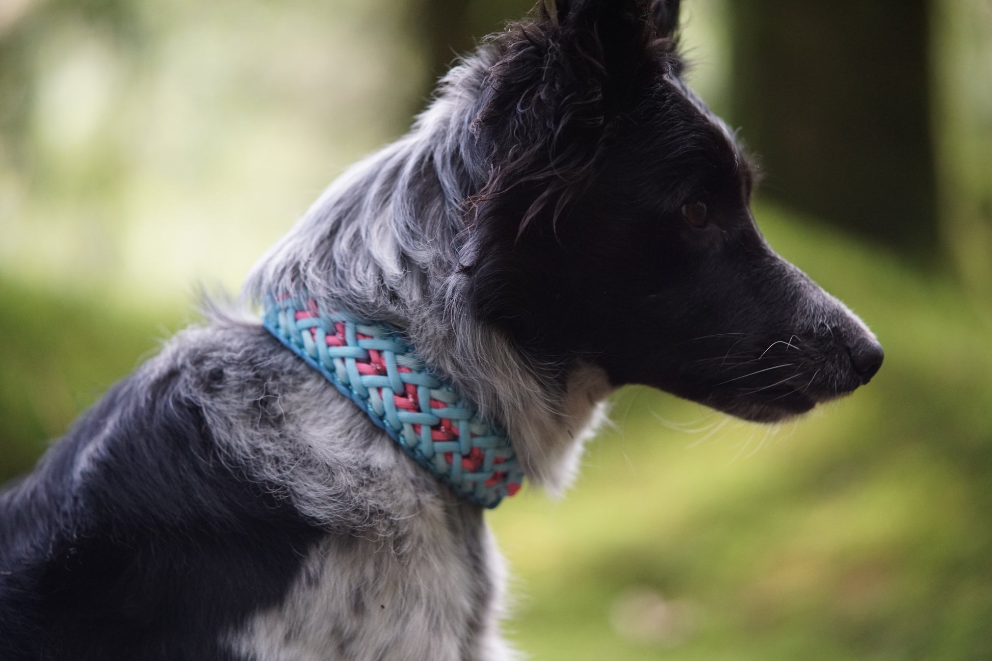 Halsbåndet kan lages i ulike farger og kombinasjoner og etter hundens mål.