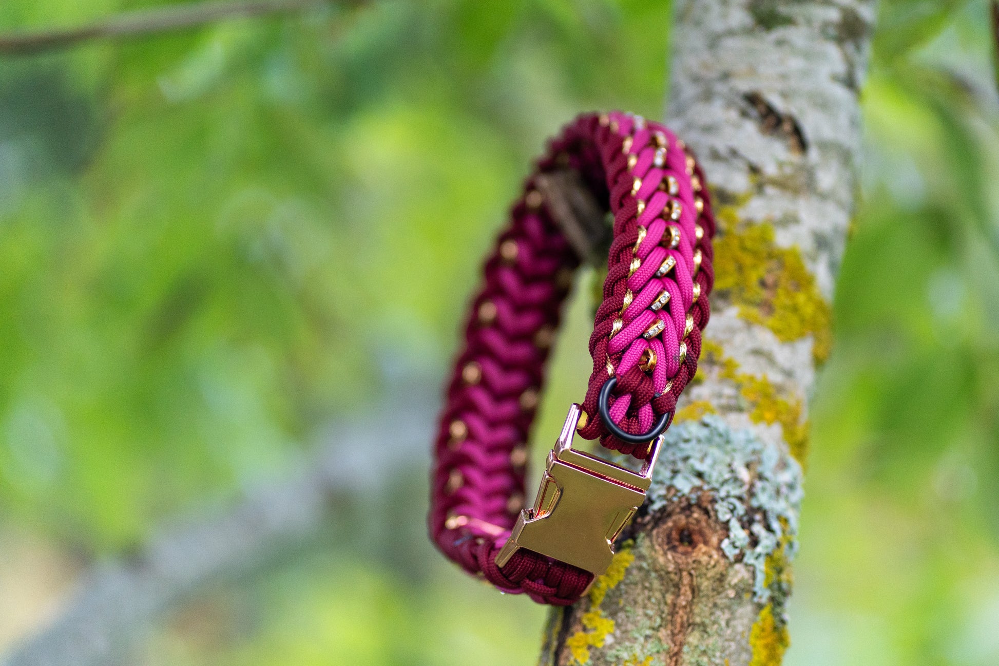Flettet i paracord 550 som er slitesterkt og har et bruddstykke på 250kg. Skylles enkelt i vann og tørkes.